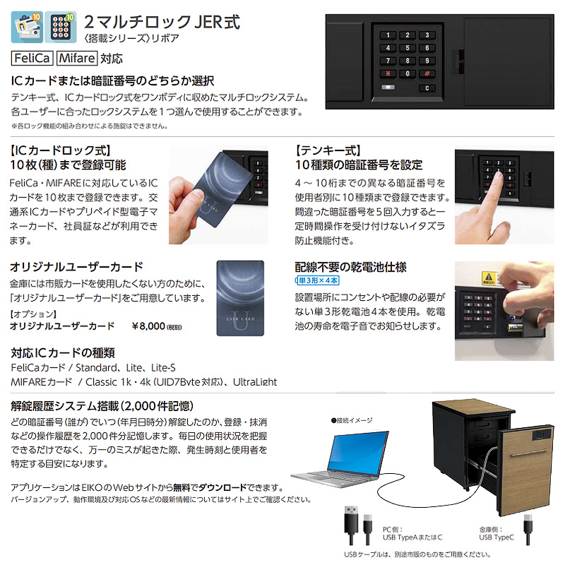●ロックシステム:2マルチロックJER2式 FeliCa Mifare対応