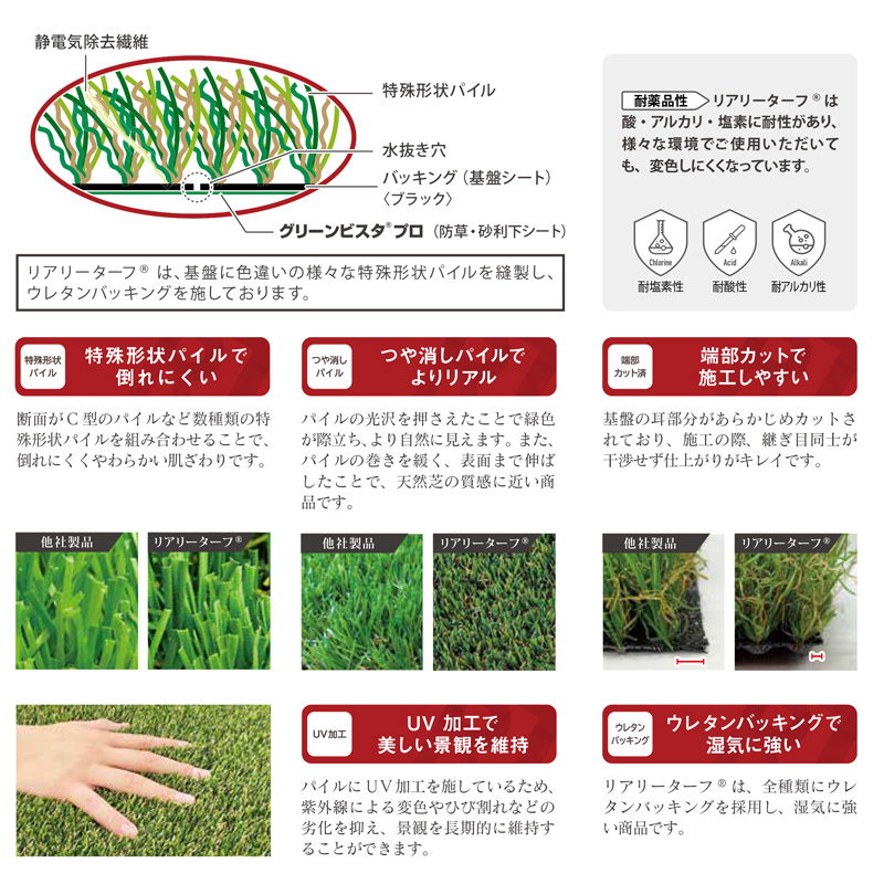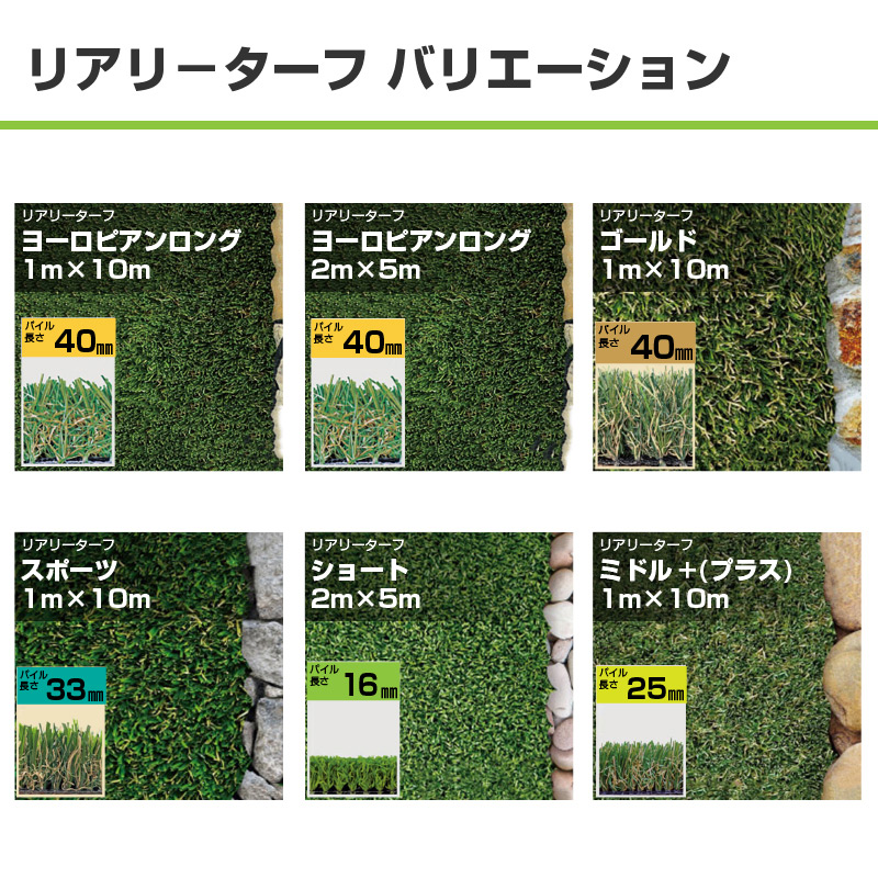 人工芝・防草シート リアリーターフ 人工芝 ミドル+ 1m×10m グリーンフィールド 庭 ガーデニング 芝生 個人宅配送不可の通販は環境生活