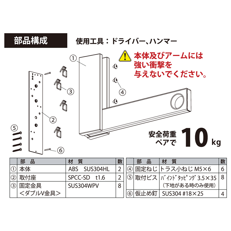 ●竿サイズは30Φまで使用可能です。安全荷重は約10kg/組です。