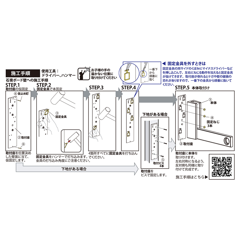 下地がある場所は、ネジでしっかりと固定することもできます。