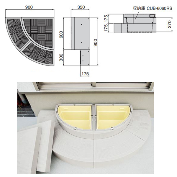 その他 城東テクノ ハウスステップRタイプ 半円型 CUB-R60S-LG ライトグレー 2個セットの通販は環境生活