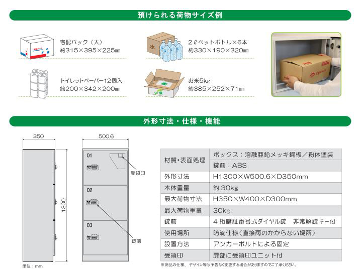 アパート用宅配ボックス オプナス[関東限定!設置費コミコミプラン] 3段式 宅配ボックス 防滴仕様 捺印付き 高さ1300×幅500.6×奥行350mm STB1A2A3W01 注文時に設置希望日(第2希望まで)等をご明記下さいの通販は環境生活