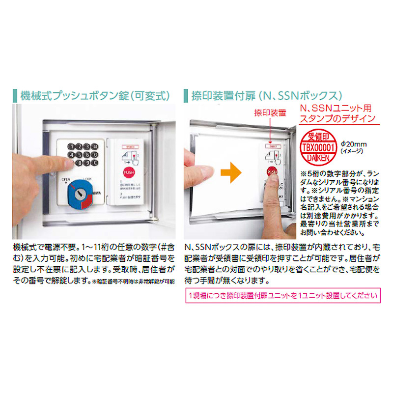 この商品は捺印システムのないユニットですので、必ずNユニット(捺印装置付き)と一緒に使用してください。