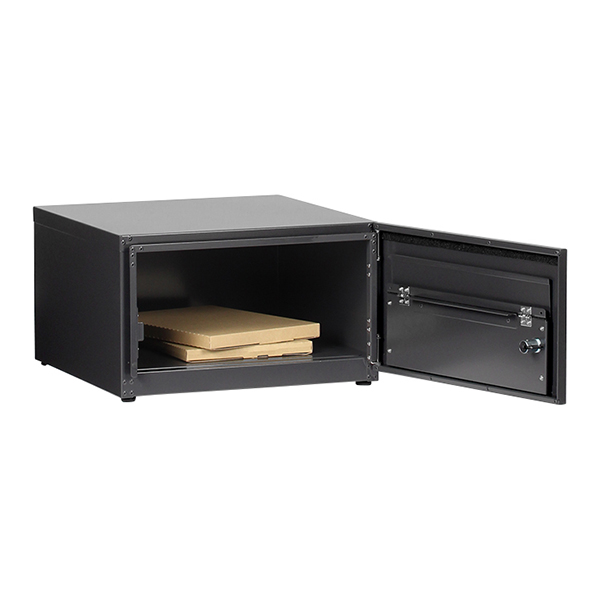 ポスト部分に荷物を投函するとポスト口が下側に倒れることで、抜き取り防止の役割を果たします。