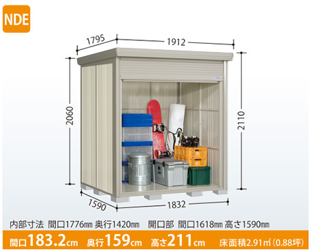 タクボ物置ストックマン シャッター扉 【転倒防止工事無料キャンペーン中!※組立注文対象】【一般型 標準屋根】タクボ物置 Mr.ストックマン ダンディ シャッター扉タイプ NDE-1815 幅1912×奥行1795×高さ2110mm [製品5年保証][正規代理店]の通販は環境生活