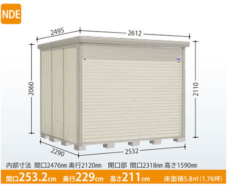 タクボ物置ストックマン シャッター扉 【転倒防止工事無料キャンペーン中!※組立注文対象】【多雪型 結露減少屋根】タクボ物置 Mr.ストックマン ダンディ シャッター扉タイプ NDE-SZ2522 幅2612×奥行2495×高さ2110mm [製品5年保証][正規代理店]の通販は環境生活