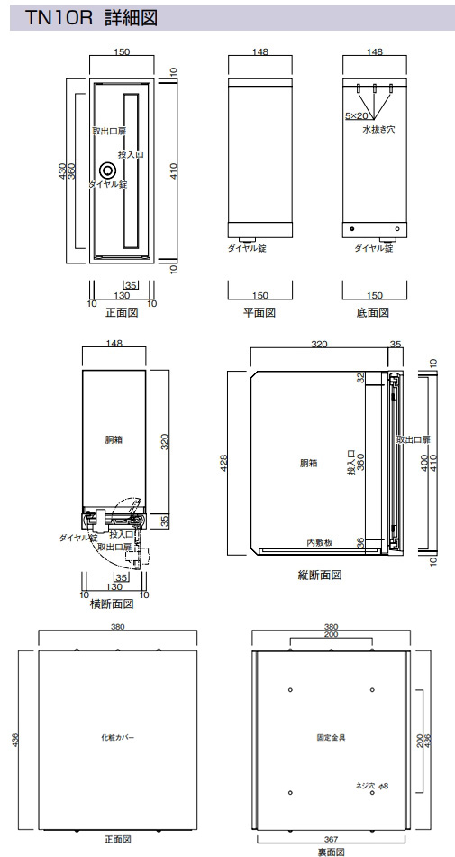 タマヤ 壁掛けポスト TN20-10R 横入れ横出し(同一方向) ※受注生産品