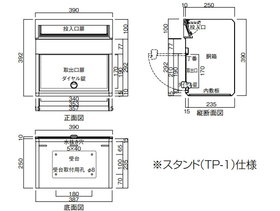 シンプル&モダン 郵便ポスト タマヤ 郵便ポスト 埋めこみタイプ(スタンドタイプ兼用) T42-2B 前入前出の通販は環境生活