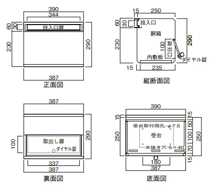 シンプル&モダン 郵便ポスト タマヤ 郵便ポスト 埋めこみタイプ(スタンドタイプ兼用) T44-1.5B 前入後出※受注生産品の通販は環境生活