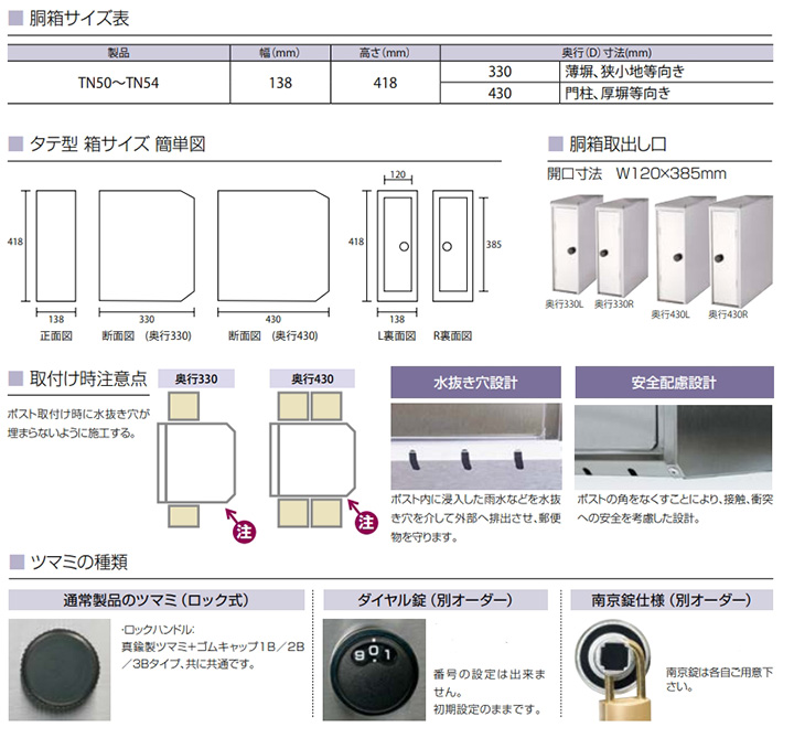 シンプル&モダン 郵便ポスト タマヤ 埋め込み型郵便ポスト 口金タイプ一体 タテ型 TN54Rの通販は環境生活