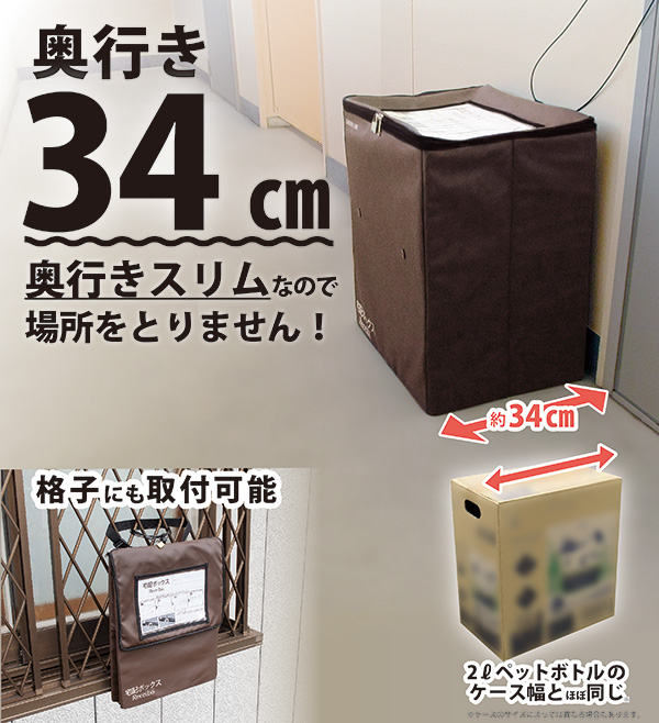 ■メール便・宅配物(幅430×奥行き330×高さ500mm迄)までの大きさまでが受け取れます。■宅配物の受け取りに必要な機能がそろっている、宅配ボックス。■内側にシャチハタ印を入れて置けます。※ 捺印用の印鑑・シャチハタはあらかじめお客様にて御用意ください。■ 底面の底鋲(脚)により安定性アップ!直接、地面に触れないから汚れにくい! ■ 外壁にマッチし、汚れが目立ちにくいブラウン色! ■ 吊り下げ、据え置き兼用!吊り下げ時は背面のベルトで格子や柱に固定できる! ■ 側面がくの字に曲がるので組立、収納がカンタンラクラク!