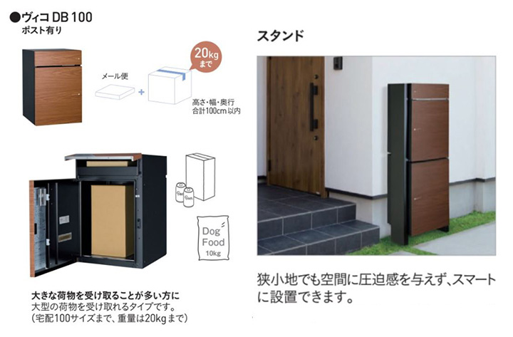 戸建用宅配ボックス 【郵便ポスト・宅配ボックス一体型】ユニソン 戸建用宅配ボックス ヴィコDB 100 ポスト有り+専用 スタンド H1300の通販は環境生活