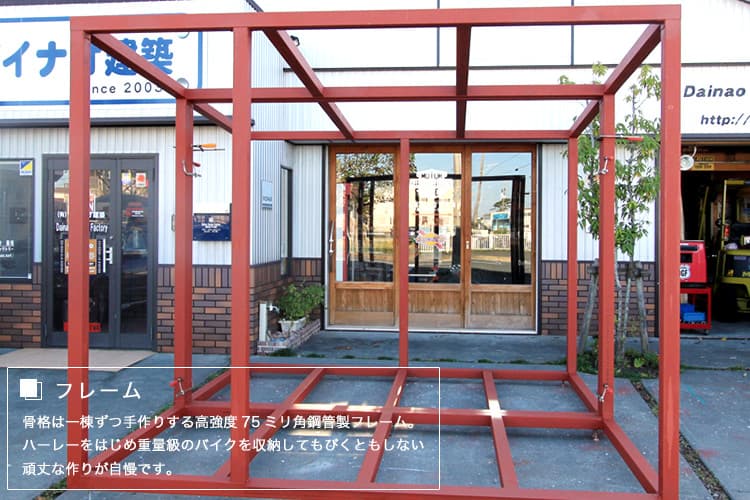 一棟ずつ心を込めて手作りするスタイリッシュでタフなバイクガレージ