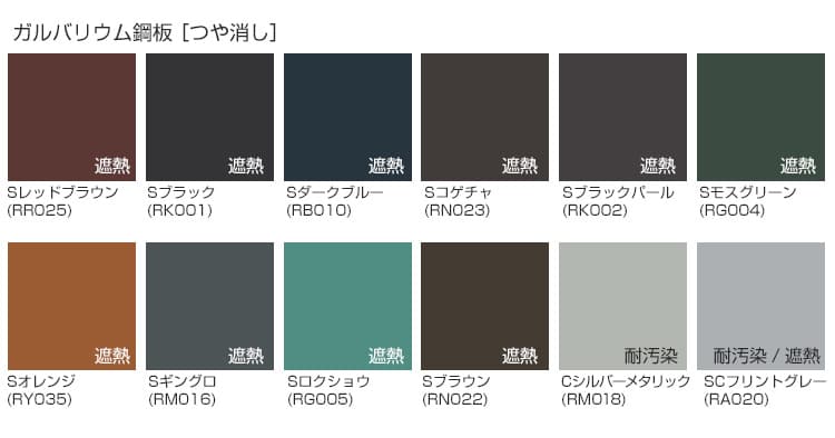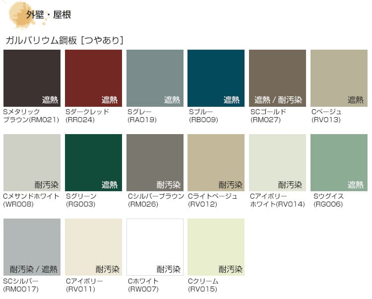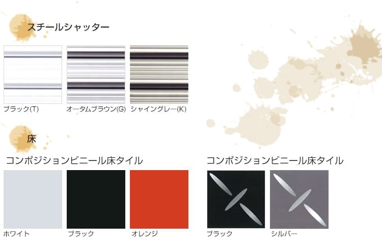 ダイナオが厳選して採用している外壁、シャッター、床材などのカラーバリエーションです。