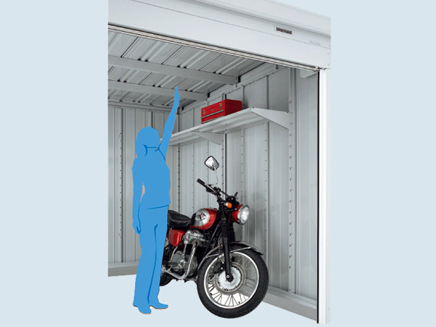 - 高さ2075mm、または間口2210mm以下のバイク保管庫には取付できません。