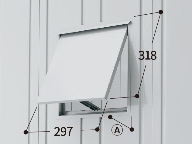 上部の排気口を鋼板製メッシュパネル(Φ8mm穴)とすることで、さらに換気量がアップします。下部のカバーの開口部(換気量)は内側から調節することが可能です。