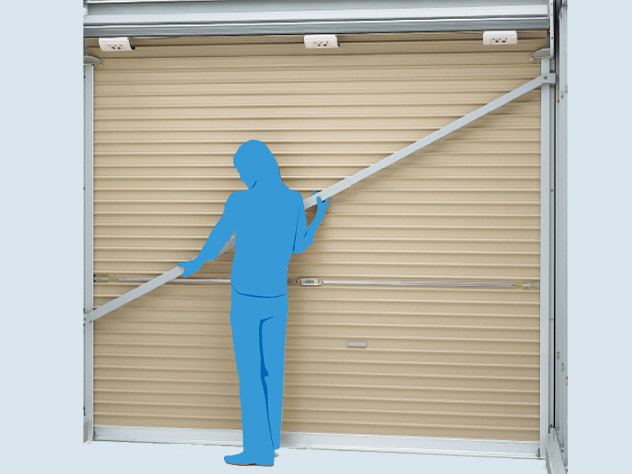 - 停電の際、手動でシャッターを操作する場合は、バイク保管庫内部で「手動切替」の操作を行う必要があります。そのため、オプションの扉・框ドアを必ず設置してください。