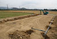 ベースパイプを設計サイズに設置し、アンカー穴の部分の穴を掘削します。