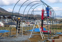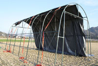 SHELLDOMEはセルフビルド可能なパイプ式テント倉庫です。施工については以下をご参考にしてください。 弊社では材料販売のみで設営手配は行っていません。設置・使用に関しては施工主責任の元行ってください。