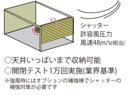 - 強風時にはオプションの補強棒でシャッターの補強対策が必要です。