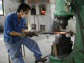 まず、製品を構成する部材を作ります。必要な長さに切断した鉄の棒材などを、炉で加熱し軟化させます。 赤熱した材料をアンピル(金床)の上でハンマーで打ち、様々な冶具を用いて手作業で造形していきます。それを何度も繰り返し形を完成させます。 必要な部材が揃うと、これらを門扉やフェンスなどの製品に組み上げます。組立は鍛鉄独自の、かしめ、リベット、ハンドなどで結合していくので、接合部分は鍛鉄独特の高級感あふれる雰囲気が漂います。また、近年では日本の文化・風景・建物に合わせた和風的なデザインも注目されています。