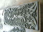 「鋳物」と「ロートアイアン」の違いは何でしょう? 最も大きな違いは製造方法で、鋳物は鋳型に金属を溶かしたものを流し込んで製造するのに対して、ロートアイアンは一つ一つの部材を鍛えて造り上げ、それをハンドワークで組み立てて製造します。 この製造方法の違いによる実用面での差として、鋳物は鋳型を使って同じデザインの同じサイズの物を量産するのが得意なのに対してロートアイアンはデザインや寸法に応じた自由自在な対応が可能です。 例えば、個々にデザインやサイズが違うものを何種類か製作したいとき、鋳物であればそれぞれの型枠が必要となりますが、ロートアイアンであれば部材の集合という特徴を生かしその箇所ごとに適した製品の製作が可能となり、完全オリジナルデザインの製品を必要な分だけローコストに製造する事が出来ます。 以上のような理由で、ロートアイアンは、多くの有名な建築家に愛され、伝統ある建築物や格式のある建築物に数多く見受けることができます。