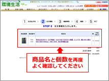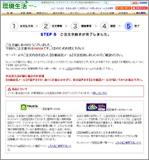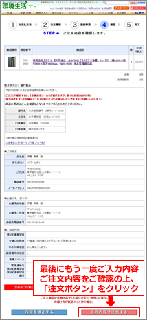 ご入力いただいた情報に間違いが無いかを確認して、[注文完了画面へ]を押してください。「ご注文手続きが完了しました。」というメッセージ画面が表示されれば、注文は完了です。