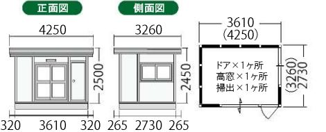 eco ミニハウス6帖の場合、本体の一番高いところで2450mm、低いところで2250mmの高さになります。そこに基礎の高さ(ブロック基礎約200mm)をプラスし、施工スペースも考慮するとそれぞれ3050mm、2850mm程度の高さ寸法が必要になります。