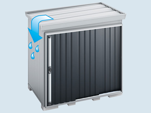 - 特に風当たりの強い場所では、風で物置ごと流される恐れがありますので、使用はお控えください。