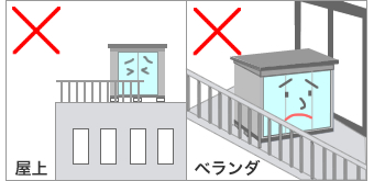 当店では安全面の配慮の為に、ベランダやバルコニーなど上位階への設置を控えております。原則、一階平場で下地が土またはコンクリート上が条件になります。 雨の場合は工事を中止する場合がございます