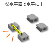 ②物置の水平出しがしっかり出来てないと、扉が開きにくくなったりする原因になります。土台は水平器を利用してしっかり水平を保ちましょう。