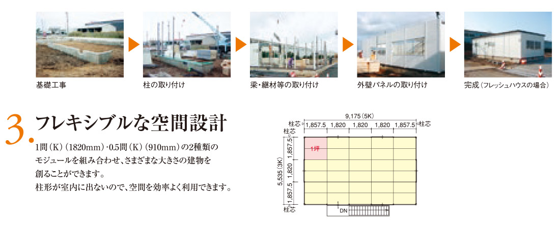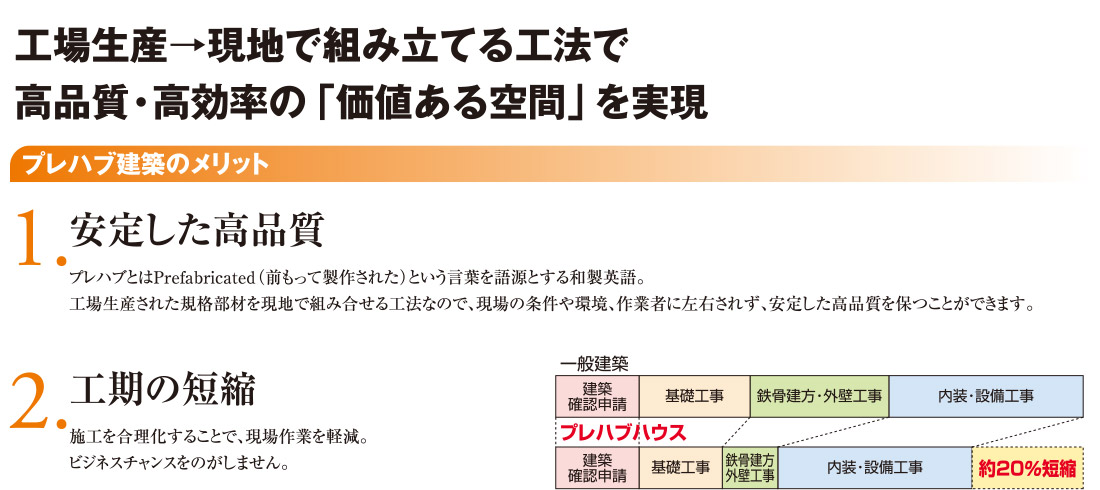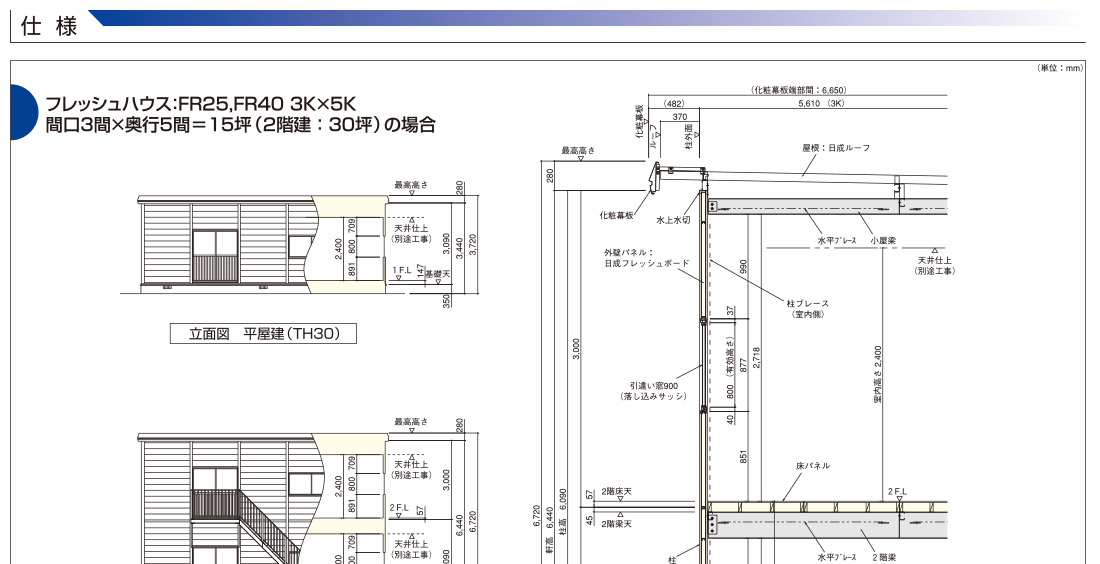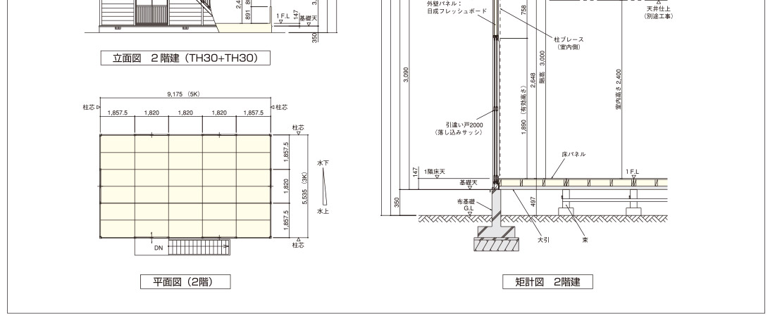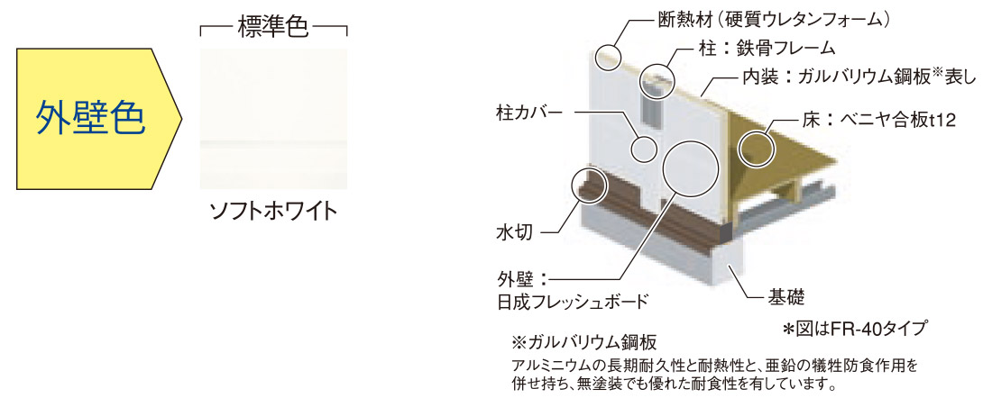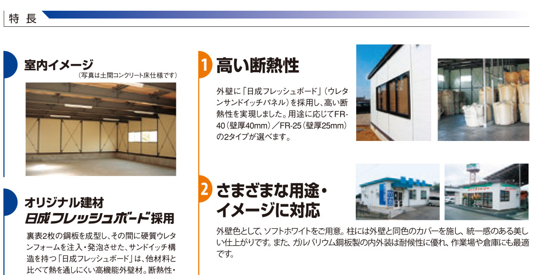 ■高断熱・高気密な「日成フレッシュボード」を外壁に用いた省エネルギータイプです。 ■耐候性・遮音性が高く、居住性を高めた安心設計です。 ■柱には外壁と同色のカバーを施すことにより、統一感のある仕上がりとなっております。