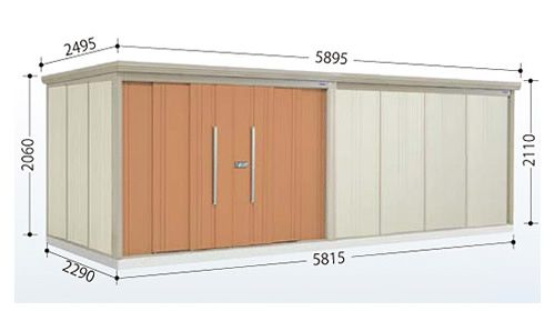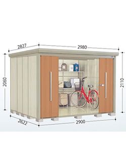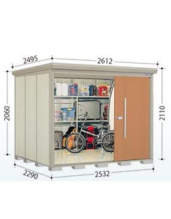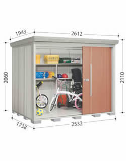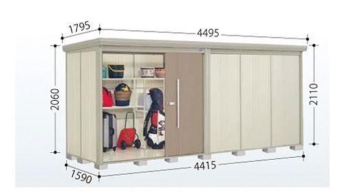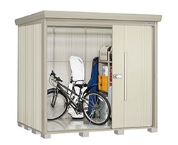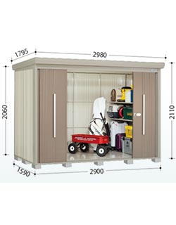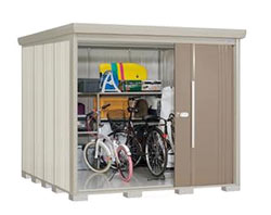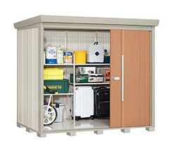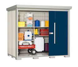 住宅の在来工法のように柱とパネルの組合せで、ねじれに強く頑丈なタクボ物置独自の構造です。柱構造の強さに加えて屋根、床、棚も頑丈です。