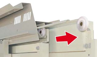 タクボ独自の連動吊り戸。上部吊りローラー方式のため、雨水やごみの影響によるトラブルが少なく、耐久性に優れています。
