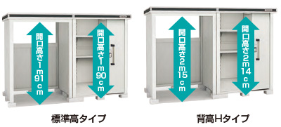 オープンスペースは30サイズで物置本体69サイズに取り付けが可能。連結組合せにより216パターンのサイズバリエーションとなります。
